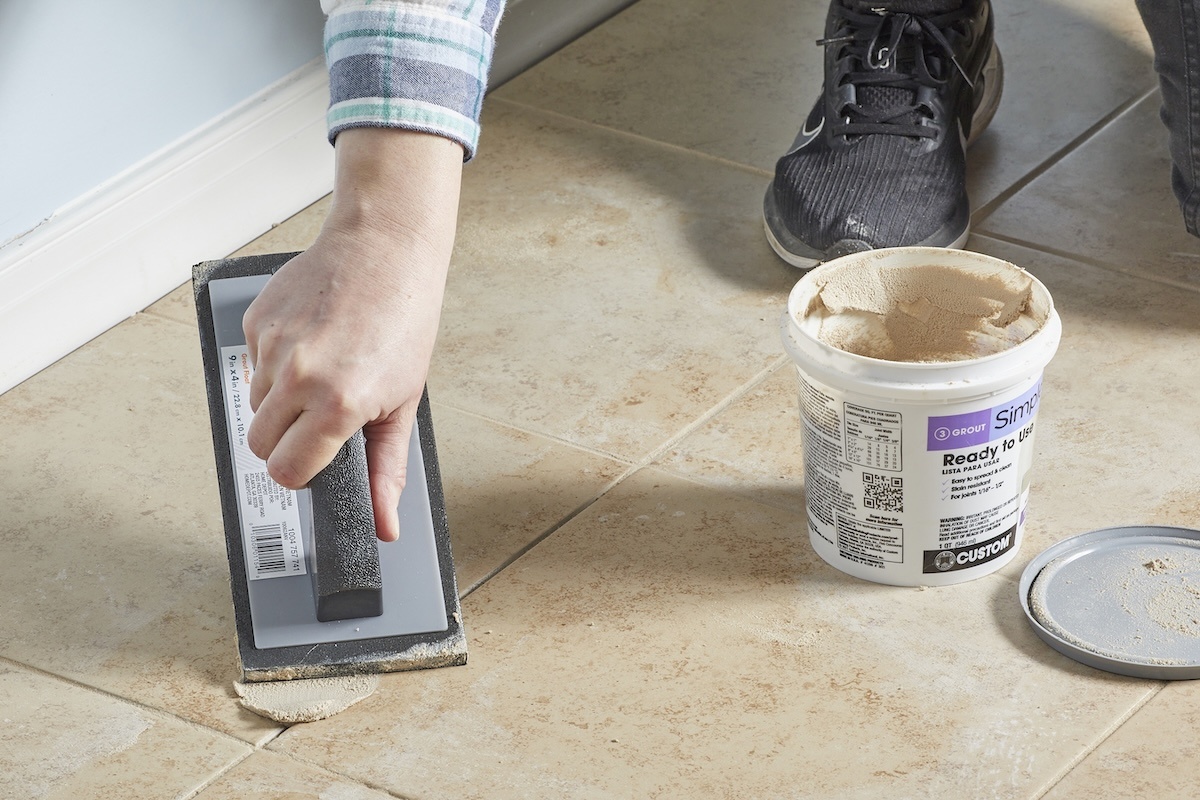 Подберите цвет затирки с помощью образцов в строительном магазине. Если ваша старая затирка светлее — добавьте при замешивании больше воды. Если темнее — воды нужно меньше.