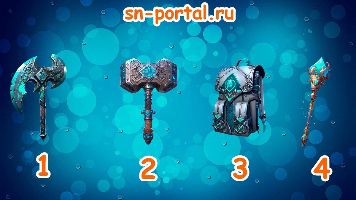 Перед тобой — четыре артефакта. Каждый из них обладает своей уникальной магией и символизирует путь к восстановлению утраченной энергии, удачи и уверенности. Внимательно взгляни на предметы: что тебя тянет интуитивно? Именно через этот выбор ты получишь послание для своей души. Ниже ты найдёшь расшифровку каждого из символов — от топора до посоха.