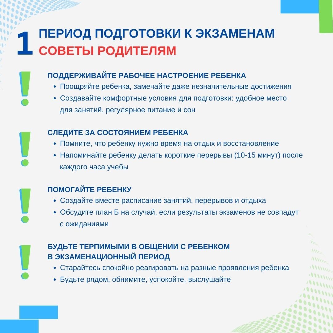 От грамотной поддержки родителей в этот период очень зависит состояние ребят, а значит, и результат экзамена, поэтому для родителей мы тоже