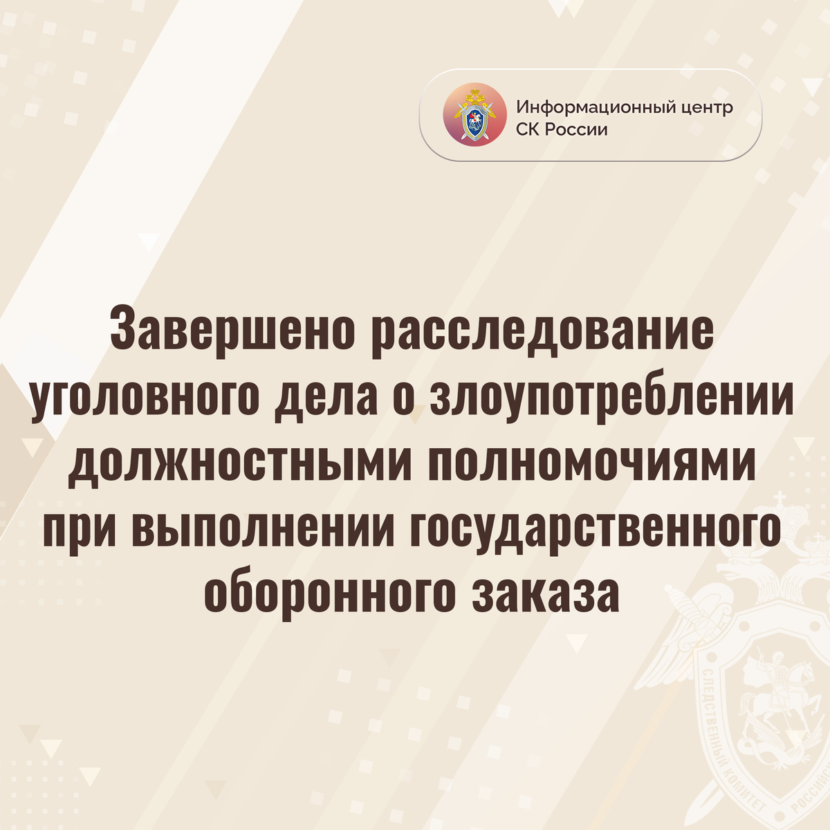 Завершено расследование уголовного дела о злоупотреблении должностными полномочиями при выполнении государственного оборонного заказа