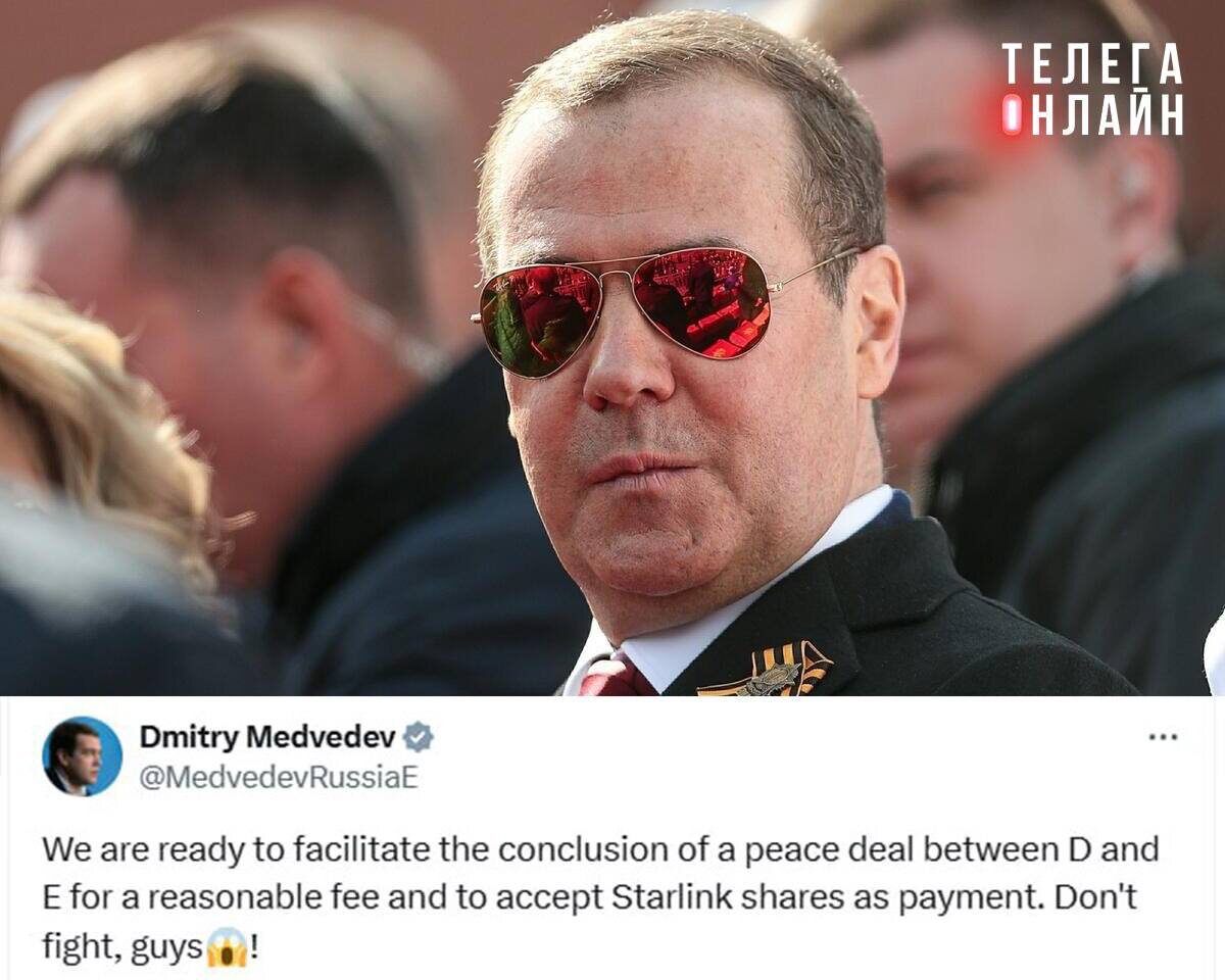 Ну наконец-то здравое предложение по урегулированию конфликта! Медведев заявил в соцсети X, что Россия готова содействовать заключению мира между Трампом и Маском за разумную плату — например, может принять акции Starlink. Переговоры можно провести в Минске или между стульями Эрдогана. 🚲 Подпишись на Телега Online