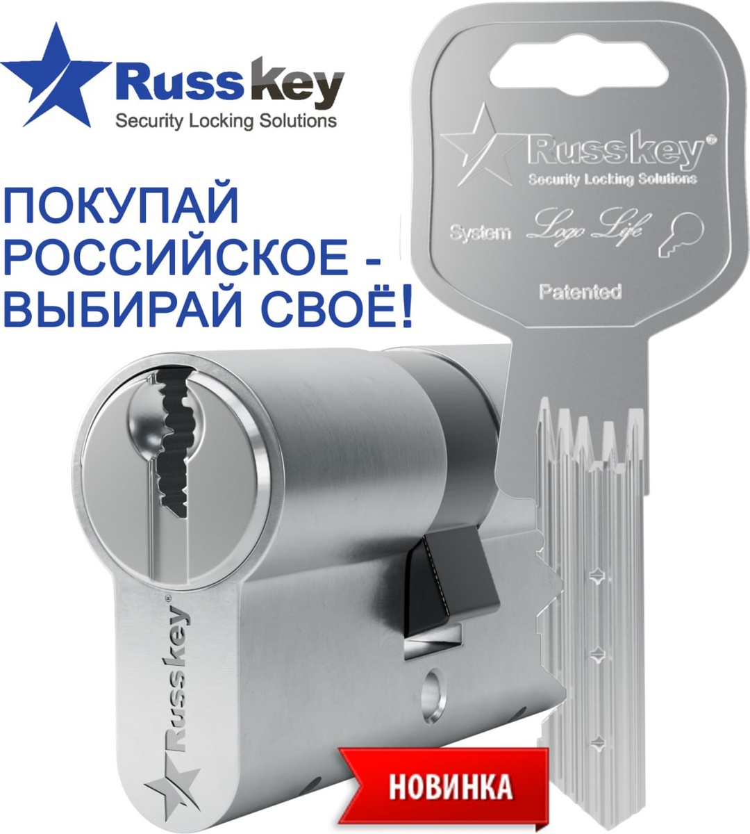 Новинка! На складе в Москве. Все размеры и конфигурации. Цилиндровый механизм RUSSKEY Logo Life. запатентовано, ЭКСТРА защита от высверливания, отмычек. Запатентованная технология. Специально разработанный для повышения сопротивления физическим и манипуляционным атакам, цилиндр выгодно отличается от обычных цилиндров. - Запатентованная конструкция; - Корпус цилиндра из массива латуни со вставками против высверливания; - Общее количество пинов – 18; - Специальные пины "грибовидной" формы, пины в форме «катушки», а также в форме «бочонка» - имеют проточку (ложные пазы) для защиты механизма цилиндра от вскрытия отмычкой и вскрытия методом "Бампинга"; - Количество секретных комбинаций: 1 500 000 Защита от перелома (ОПЦИЯ – в наличии, но по запросу) защищены от перелома в месте крепления винта (по центру цилиндра). Благодаря новой технологии защиты- специальному – БАРУ из закаленной стали, цилиндр защищен от наиболее частых случаев взлома.