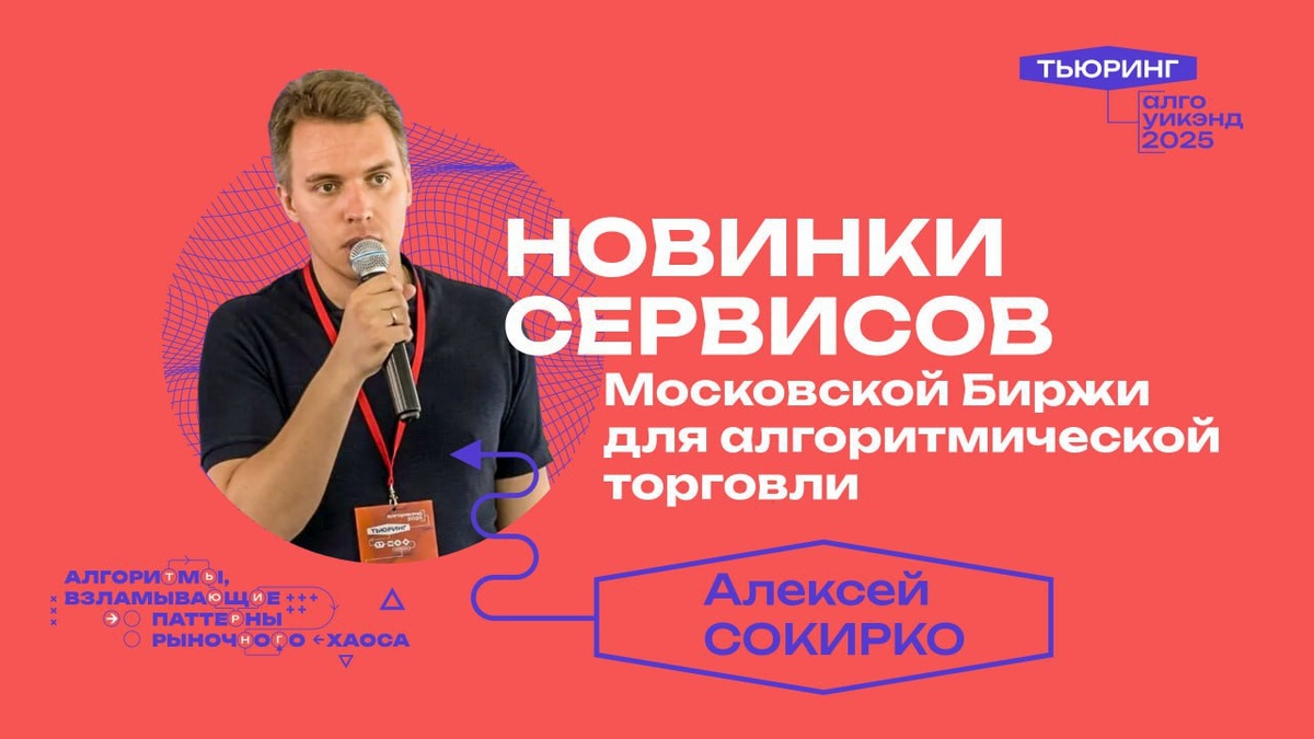 Запись выступления спикеров Алгоуикенда «Тьюринг: алгоритмы, взламывающие паттерны рыночного хаоса» Алексей Сокирко, начальник управления развития технологических услуг ПАО Московская Биржа. Тема выступления: Новинки сервисов Московской Биржи для алгоритмической торговли СМОТРЕТЬ ЗАПИСЬ: ВК Ютуб #биржевойАрбитраж #арбитраж #алготрейдинг 🔗 Канал | Сайт | Обучение