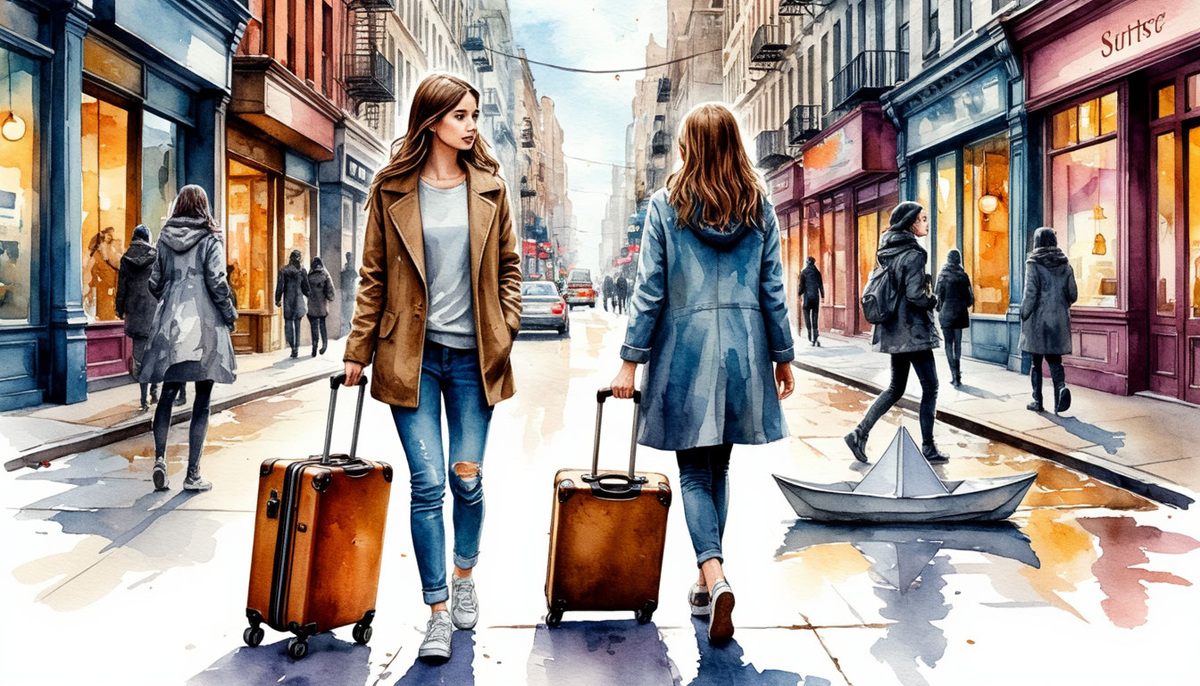 Городская сказка-притча о путешествии Леи В этом городе всегда шумно. Гудят автобусы, мигают вывески, поздние мамы тащат за руки взъерошенных малышей, а уличный музыкант играет в одну и ту же флейту. Но лишь Лея, среди этой сутолоки, волочит за собой потёртый чемоданчик на колёсиках. Чемодан скрипит, звенит по плитке — но никто, никто не оборачивается. Только ей слышно: этот чемодан всегда был рядом, с самого детства, и только она его замечает. Колёсики как будто говорят: Кто же, если не ты? Кто донесёт твой груз? Но Лея только крепче сжимает ручку чемоданчика и шагает по тротуару. Она не умеет идти без него. Первой на пути — старая, немного облезлая детская площадка. Окна домов, качели, жёлтая горка. Здесь когда-то давно Лея смеялась так взрослым, что смех её до сих пор не ушёл из этих лавочек и песочниц. И странно — кажется, за шумом города едва слышен детский голос: — Беги, Лея! Лови, не бойся, я рядом! Она чуть замедляет шаг, открывает свой чемоданчик — внутри лежит лоскутная кукла