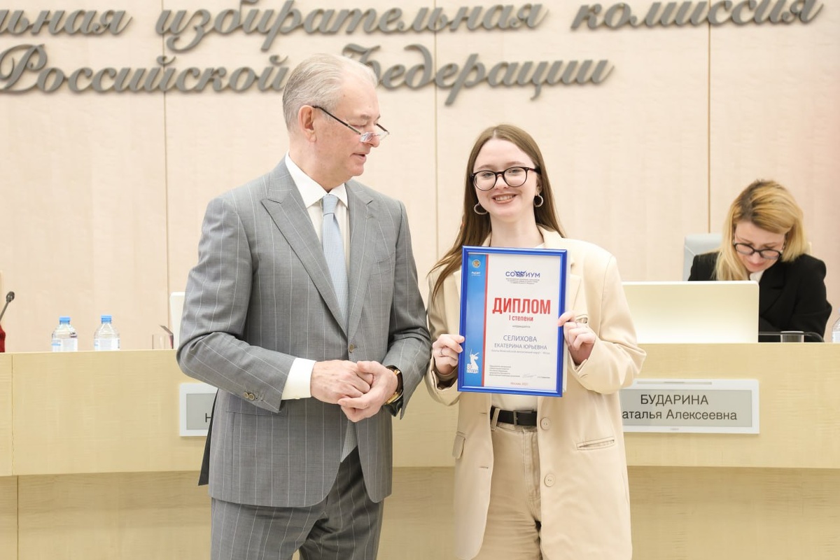 🦉 Дважды победитель «Софиума» Екатерина Селихова, 11-й класс Регион: Ханты-Мансийский автономный округ – Югра Образовательная организация: МБОУ «Излучинская общеобразовательная средняя школа № 2 с углубленным изучением отдельных предметов» Наставник: Рябова Зинаида Владимировна, председатель ТИК Нижневартовского района Фото: РЦОИТ при ЦИК России #простоовыборах #софиум #золотойзапас