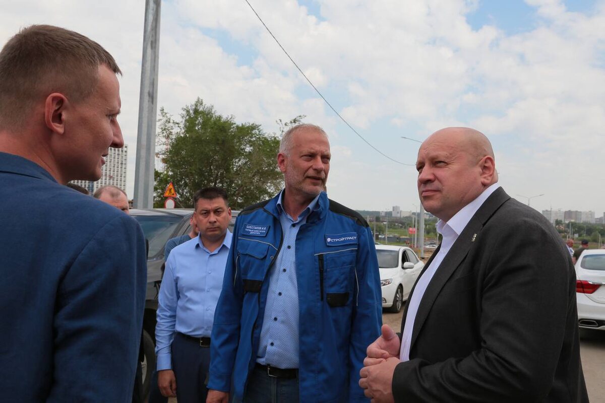 «Считаю, что на современном объекте не должно быть таких “серых пятен”. Поручил главе округа проработать с собственниками варианты переноса». Сергей Шелест подчеркнул, что «цельная картина обновлённого бульвара уже чётко прорисовывается»: на объекте работают до 80 человек, используется три десятка техники. Подрядчик планирует усилить темпы и завершить реконструкцию ко Дню города. Фото: Владимир Казионов