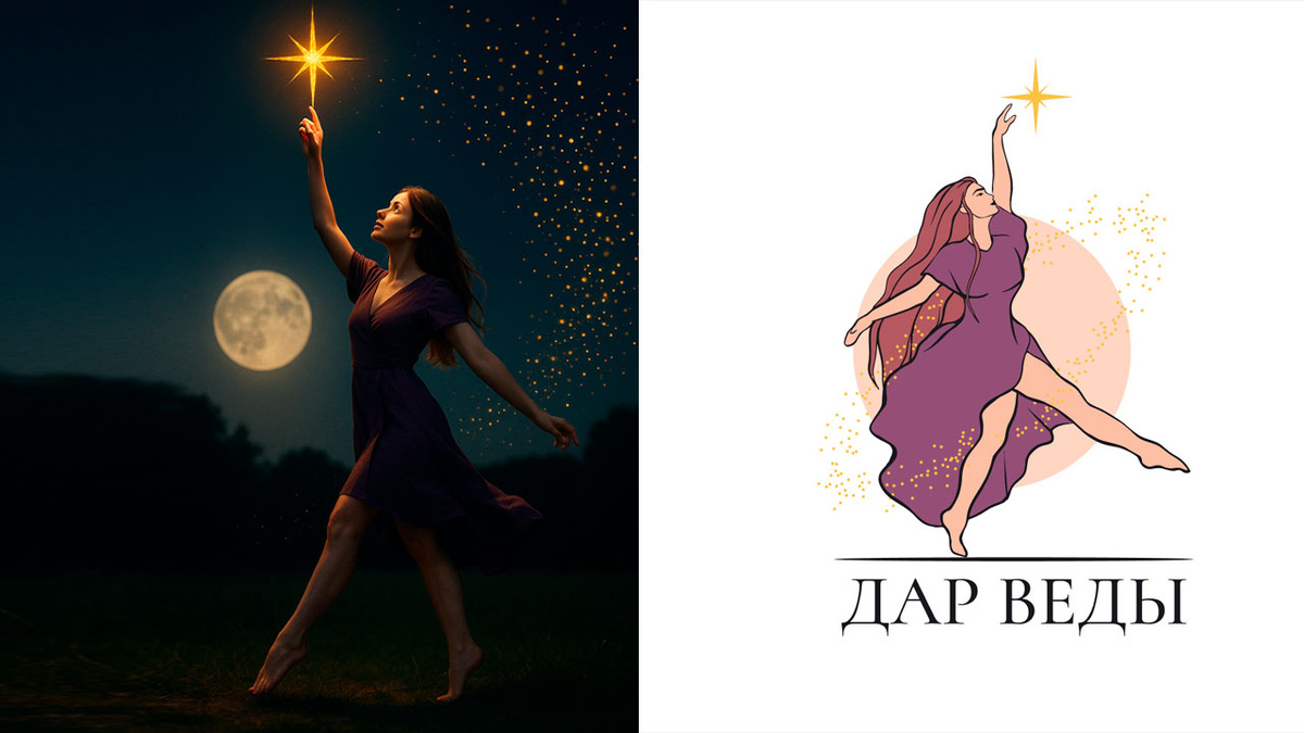 Привет! 👋 🌟 Бывает, смотришь на свой логотип — красиво, но будто молчит… Вчера я дала ему «заговорить» — закинула его в Искусственный Интеллект, выполняя домашнее задание по распаковке личности и экспертизы на курсе по AI-автоматизации. 😊 Нейросеть не просто оживила мой логотип, но и «подсветила» смыслы бренда «Дар Веды». Что получилось? Звезда вспыхнула ярче, вокруг — золотая пыльца движения, а Луна держит фон, как тёплая ладонь. 🔮 Глубокий символический разбор: • Название «Дар Веды». «Дар» — врождённая щедрость и сила; «Веда» — интуитивное знание, ведать. Уже в названии зашита миссия: вернуть женщинам их природный дар ведать и творить. • Женский силуэт босиком. Ноги на земле, тело тянется вверх — рост через связь с природой, а не отрыв от реальности. • Развевающаяся одежда. Лёгкий воздух, «выход из старых форм» — свобода начинается с разрешения себе меняться. • Поднятая рука и звезда. Женщина стремится к путеводной звезде — архетип Проводницы, которая помогает другим найти предна