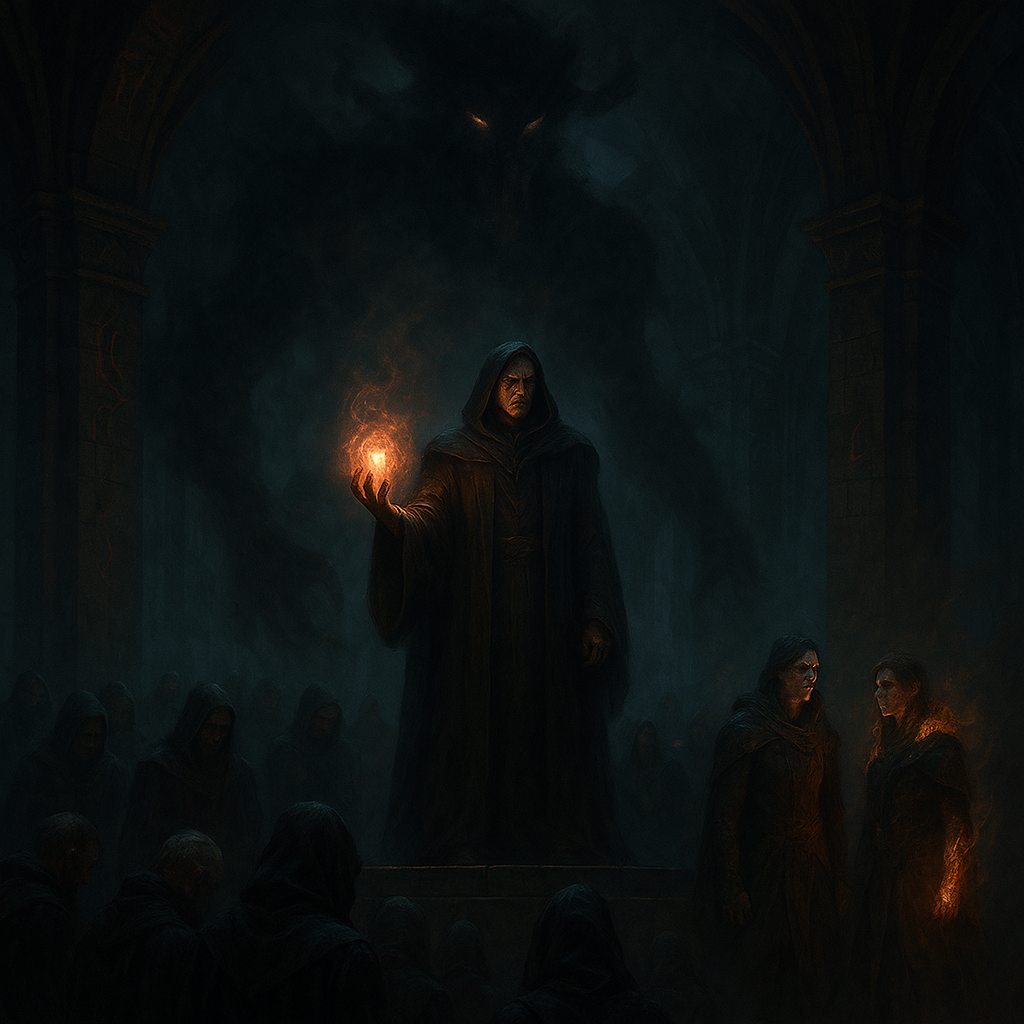Некоторые из них, потеряв волю, уже не были собой. Их лица опустели, движения стали рваными и подчинёнными — марионетки, лишённые свободы. Тонкие нити тьмы, едва видимые в воздухе, тянулись от их тел к пальцам Эльридана, как символ его абсолютной власти.