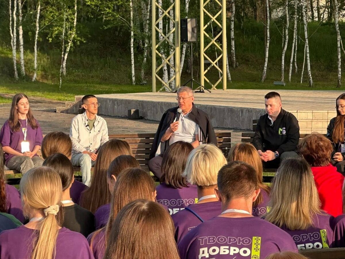 Ученики школы №2 и воспитанники клуба «Октава» встретились с главой региона Радием Хабировым. Общение прошло в «Лагере волонтёров Республики Башкортостан» в парке «Патриот» под Уфой. Со 2 по 4 июня ребят ждала насыщенная программа: культурная, спортивная и образовательная. В парк «Патриот» съехались более трёхсот детей со всего Башкортостана. Им, конечно, особенно запомнилась беседа с Радием Хабировым. Говорили о важности поддержки волонтёрских организаций и помощи тем, кто сам не может позаботиться о себе. Приглашённые региональные и федеральные эксперты рассказали юным участникам как волонтёрство влияет на формирование личности и приобретение полезных в жизни навыков, а также отвечали на вопросы детей. Масштабное событие проводится каждое лето, и посвящено оно развитию добровольческого движения нашей республики.