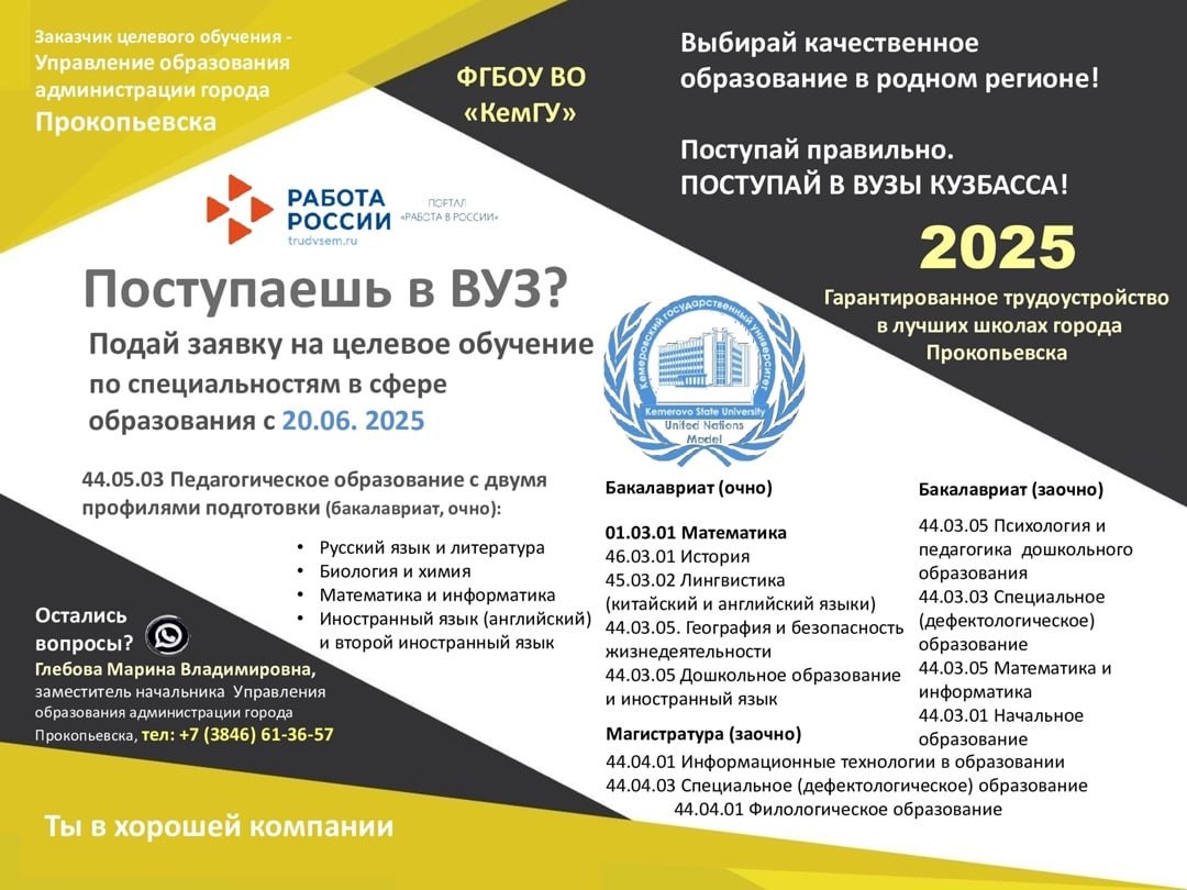 В Прокопьевске выпускников школ приглашают на целевое обучение по программам высшего образования педагогической направленности. Заказчиком выступает Управление образования администрация города. В прошлом году выпускники подали 6 заявлений в вузы Кузбасса на целевое обучение. Подробнее 🔴 Подпишись | 🔴 Предложи новость ⚡️BOOST КАНАЛА⚡️
