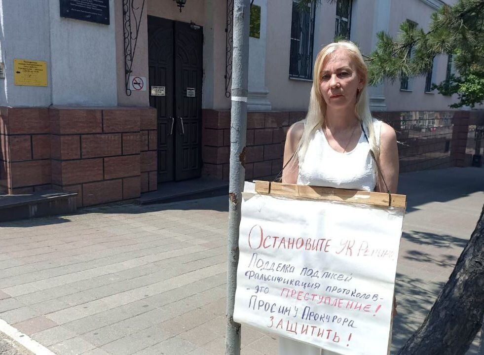 В Новороссийске активистка вышла с одиночным пикетом просить у Прокурора защитить права собственников и остановить беспредел Репино