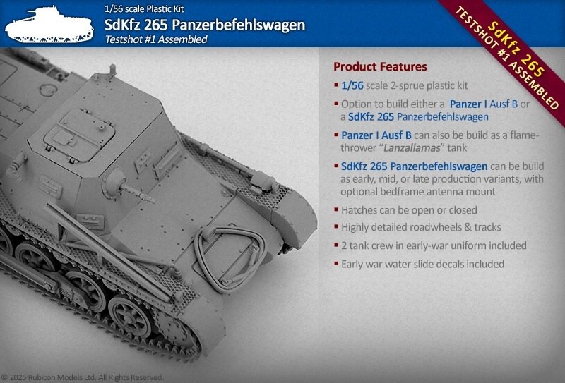 Английская Rubicon Models показала тестовую сборку своей июньской новинки - модели Sd.Kfz. 265 Panzerbefehlswagen на базе Panzer I Ausf. B в масштабе 1/56 (28 мм).