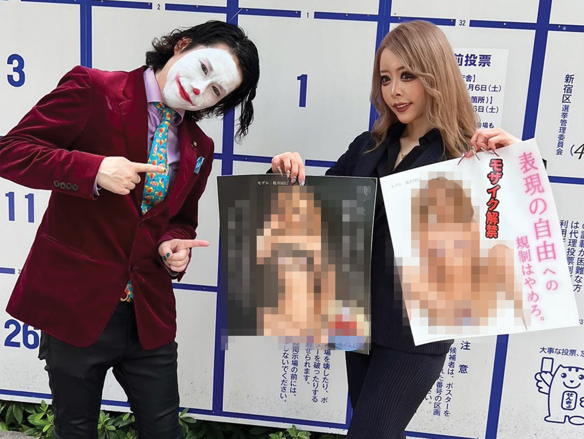 Его самым скандальным постером стало изображение обнажённой модели Мию Сакурай – она присутствовала на его «открытии» и очень радовалась своему камео на этой избирательной гонке. Однако постеры вскоре пришлось снять – на Каваи даже подали жалобу за неуместную рекламу.