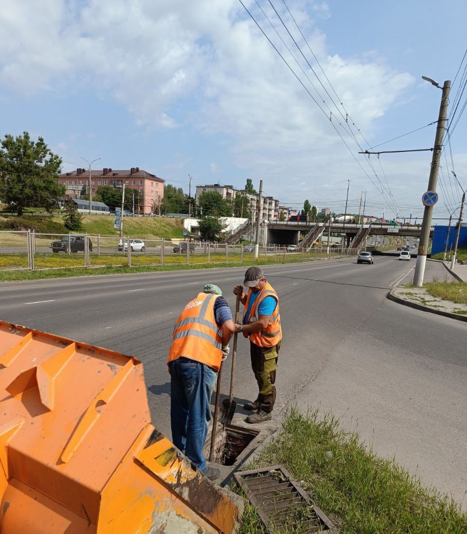 Уборка ведется в центре Курска и в других его районах.