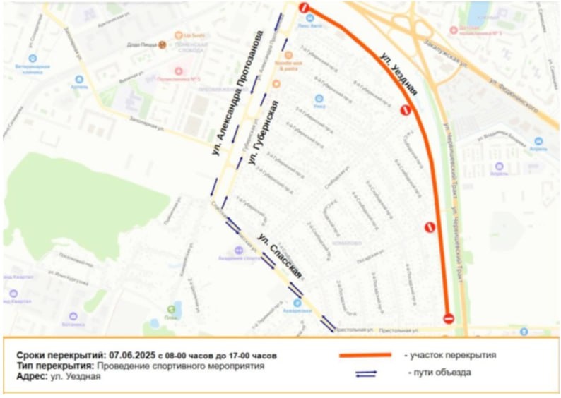 Машины меняем на велосипеды В связи с проведением чемпионата и первенства Тюменской области по велосипедному спорту будет прекращено движение транспортных средств по ул. Уездной от ул. Престольной до ул. Губернской с 8 до 17 часов 7 июня. Участников дорожного движения просим обращать внимание на дорожные знаки, заранее планировать маршрут движения, соблюдать Правила дорожного движения РФ. Возможные маршруты объезда: ул. Престольная, ул. Спасская, ул. Губернская, ул. А. Протозанова.