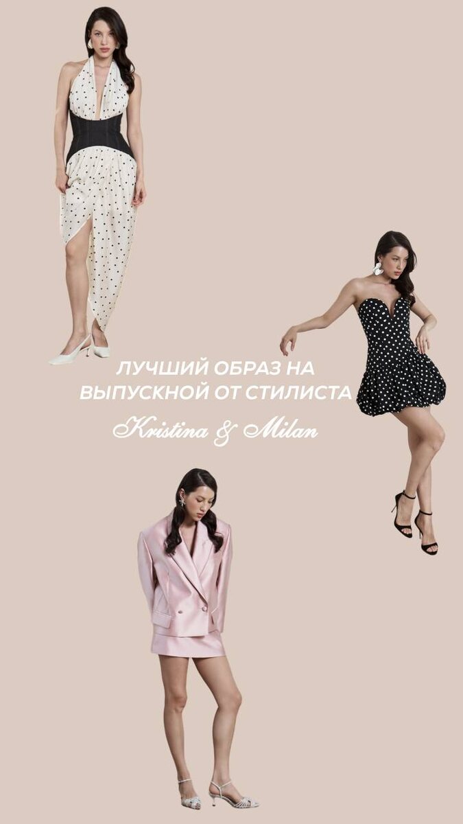 Битва вечерних образов на выпускной от стилиста Kristina&Milan ✨ Три идеи образа для главного вечера всех выпускниц мы с вами разобрали, а теперь настало время выбрать лучший из них👇🏼 Лучший, как всегда выберете вы: 1️⃣ Образ в розовом костюме и сверкающих слингбэках 2️⃣ Образ в мини платье и дерзких босоножках 3️⃣ Образ в контрастном платье в горох и элегантных слингбэках Голосуйте ⤵️