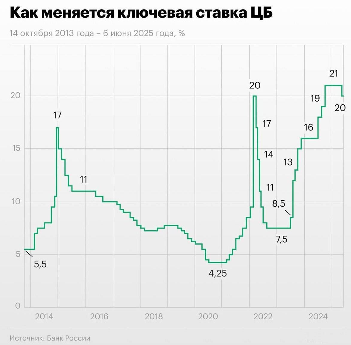 ❗ Центробанк понизил ключевую ставку впервые почти за три года — до 20%