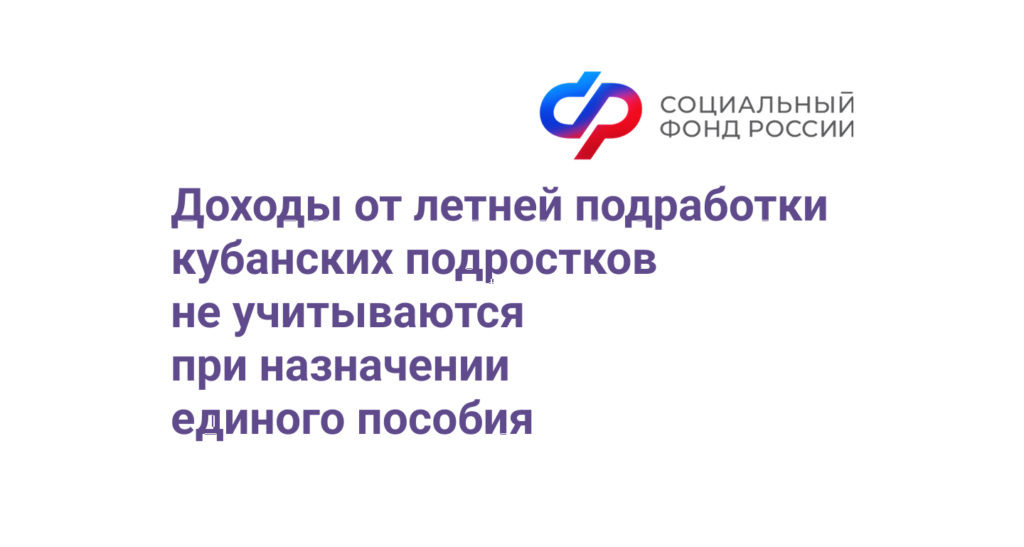 Доходы от трудовой деятельности кубанских подростков до 18 лет при назначении единого пособия не учитываются при оценке доходов семьи, с условием, что юные граждане учились в школе, ссузе или в вузе по очной форме не менее 6 месяцев расчетного периода. Подтвердить факт обучения ребенка необходимо в чек-боксе заявления (маленьком квадратике возле вопроса), обозначив нужный пункт галочкой, а также предоставить справку из учебного заведения. Правила не распространяются на доходы школьников и студентов от самозанятости – они по-прежнему учитываются при расчете среднедушевого дохода семьи. Подать заявление на назначение единого пособия можно на портале госуслуг, в клиентской службе Отделения Социального фонда России по Краснодарскому краю или в МФЦ. Период выплаты единого пособия составляет 12 месяцев, а если пособие необходимо продлить, заявление следует подать в месяце окончания срока выплаты. При рассмотрении заявления на продление единого пособия учитываются доходы и имущество семьи. Пр