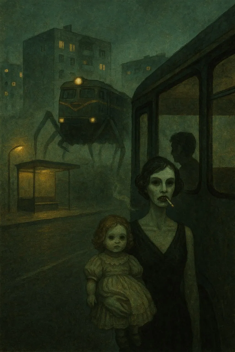 Потом я поделился сюжетом и наработками с чатомГПТ, чтобы он нарисовал мне черновик обложки. И, о боги, это шикарно, оно почти идеально повторяет образы из сна!