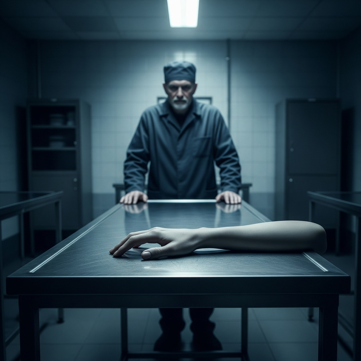 Он делал все как обычно. Мыл полы, протирал столы, перевозил тела на каталке. Его лицо, похожее на печеную картофелину, не выражало ничего. Его глаза, глубоко сидящие, почти бесцветные, смотрели в никуда. Но была в его движениях одна странность. Когда он прикасался к покойникам, он делал это с какой-то необычной, почти нежной осторожностью. Не как к объектам. А как… как гурман, осматривающий продукты на рынке.