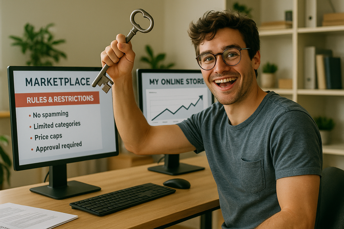 - Уменьшение зависимости от чужих правил. Ваш интернет-магазин — это пространство, где вы сами устанавливаете правила и стратегию.