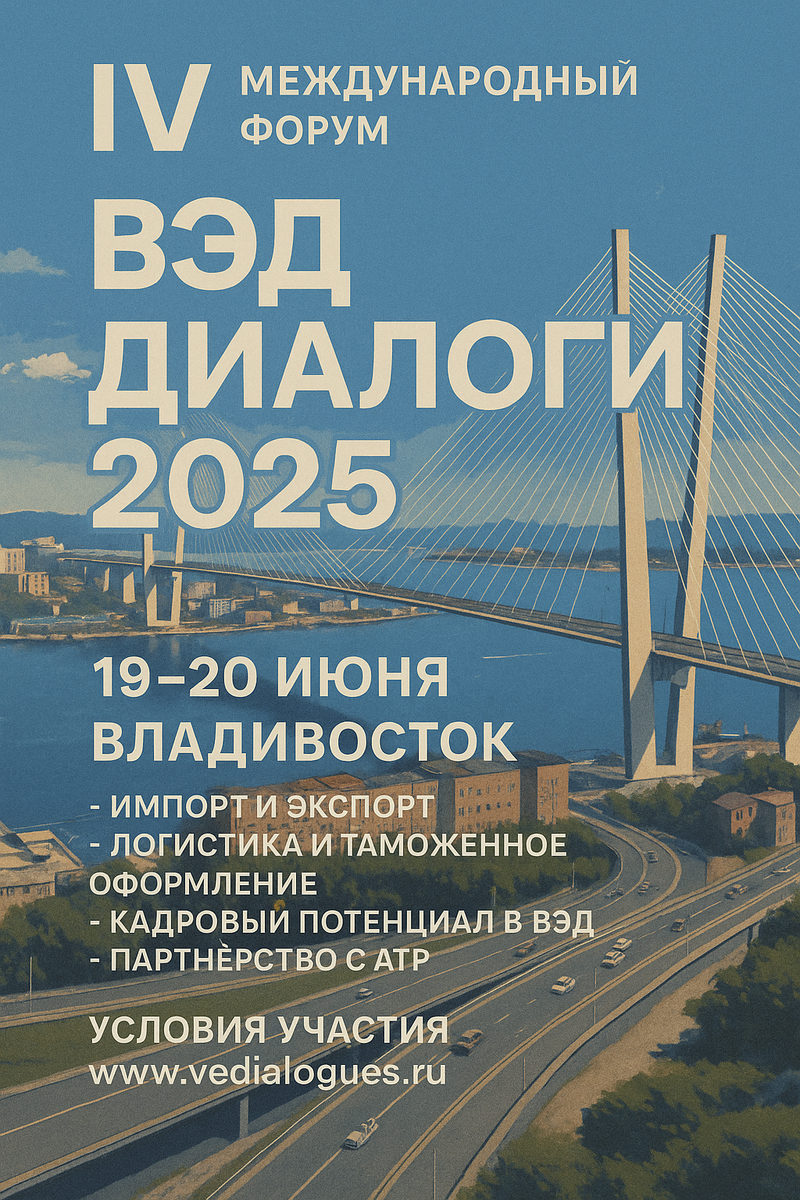 Владивосток, как ключевая точка восточного торгового рубежа России, в июне 2025 года принимает IV Международный форум «ВЭД ДИАЛОГИ» — стратегическую площадку, на которой встречаются представители бизнеса, власти и эксперты в области внешнеэкономической деятельности. Мероприятие проходит на фоне важных макроэкономических сдвигов и структурных изменений в системе ВЭД Приморского края. По итогам первого квартала 2025 года: Форум «ВЭД ДИАЛОГИ 2025» ставит перед собой задачи: Среди участников — представители федеральных и региональных министерств, ФТС, РЭЦ, АО «Российский экспортный центр», Сбер, ВТБ, а также предприниматели с экспортной или логистической специализацией. Форум проходит в контексте активной реализации федеральных программ по развитию Дальнего Востока, включая: ВЭД в Приморском крае — это уже более 7 000 активных участников, оборот в десятки миллиардов долларов и ежегодное увеличение доли несырьевого экспорта. Форум «ВЭД ДИАЛОГИ 2025» подтверждает статус Владивостока как инте