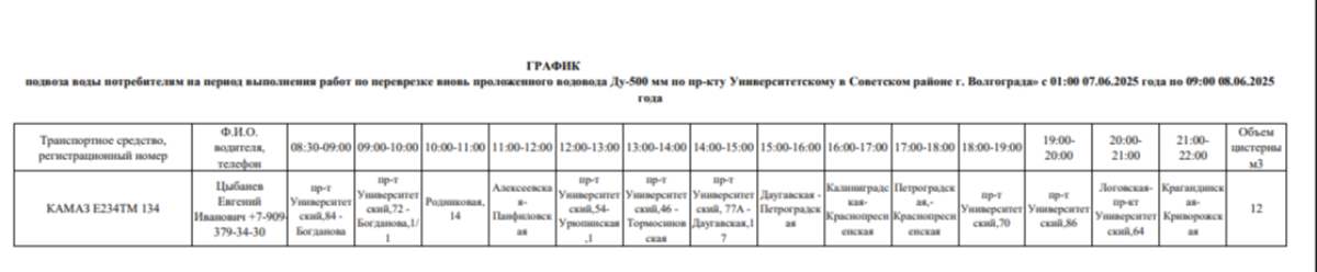 Ближайшие выходные предстоит провести без водоснабжения жителям двух районов Волгограда. Плановое отключение воды в Советском районе начнется ближайшей ночью — с 1:00 7 июня. Вернут водоснабжение утром в воскресенье — 8 июня в 9:00. Список адресов на отключение воды в Советском районе Волгограда: проспект Университетский — 42, 44, 46, 48, 50, 52, 54, 56, 58, 71/1, 72,73, 74, 75, 76, 77, 78,80, 82,84, 86, 64, 68,70, 77, 77А улица Богданова — 1/1,1/2,1/3,1/5 улица Петроградская — 2,3,5,7,2 А улица Калининградская,2,5 улица Даугавская — 1,3,4, 4А,5,9, 11,13,15, 17,16, 20, 5А ,7 ,7А улица Родниковая — 14,16,18 улица Электролесовская, 45 улица Логовская, 43,70-82 улица Урюпинская — 1, 2А улица Алексеевская — 31,50,69-79 улица Петровская, 9 улица Панфиловская — 3,5,8-34 улица Тормосиновская, 1 улица Нижничирская, 3-25 улица Карагадинская, 3-21 По данным «Концессий водоснабжения», подача ресурса будет приостановлена для выполнения специалистами подрядной организации работ по переврезке вновь