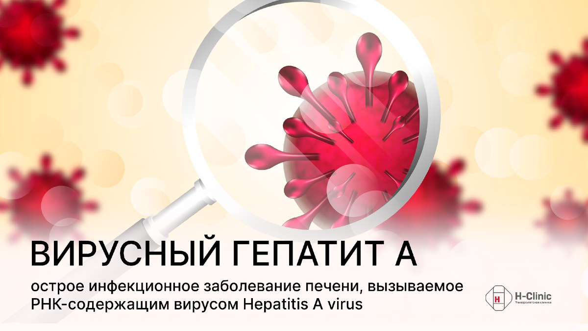 Вирусный гепатит А — острое инфекционное заболевание печени, вызываемое РНК-содержащим вирусом Hepatitis A virus (HAV) из семейства Picornaviridae. Болезнь распространена во всем мире, особенно в регионах с низким уровнем санитарии. Несмотря на доброкачественное течение в большинстве случаев, вирусный гепатит А остается значимой проблемой здравоохранения из-за риска массовых вспышек и редких, но опасных осложнений. Возбудитель и распространённость вируса Вирус гепатита A устойчив к внешним воздействиям. Он сохраняет жизнеспособность в воде до 10 месяцев, выдерживает температуру до +60 °C и кислую среду желудка. Погибает при кипячении, УФ-облучении и обработке хлорсодержащими дезинфектантами. У вируса есть лишь один серотип, что делает иммунитет после перенесенной инфекции пожизненным и стойким, а вакцинацию - универсально эффективной. Гепатит A распространен в странах Азии, Африки и Латинской Америки. В России заболеваемость снизилась в 3,8 раза с 2009 по 2020 год, но локальные вспышки