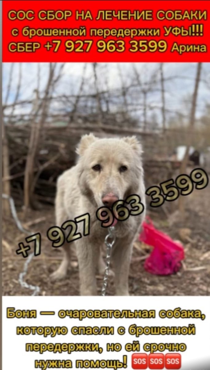 Бонечка, только ЖИВИ! Друзья! Нам срочно нужна помощь!!! СБОР НА СПАСЕНИЕ ЖИЗНИ! Необходимо лечение собаки спасенной с брошенной передержки! Боня — очаровательная ДОБРЕЙШАЯ собака, которую спасли с брошенной передержки в Уфе, но ей срочно нужна помощь! 🆘🆘🆘 У Бони подозрение на рак молочных желез, и мы не можем оставить ее в беде — лечение стоит 45.000₽. 😩😩😩 Также у Бони атрофия мышц задних конечностей, ей необходимы долгие и частые прогулки. 🙏🏼‼️ Мы ищем ей ФИЗИЧЕСКОГО КУРАТОРА или СЕМЬЮ, так как это невозможно организовать в условиях «приюта» 😩😩😩 Друзья, давайте поддержим ее!🙏🏼 ‼️Бонечке нужно срочно пройти: Унилатеральная мастектомия ( 32000 руб) Узи-Эхо Сердца ( 1800 руб) Узи брюшной полости на наличие метастаз ( 1800 руб) ОАК+ БХ крови ( 4100 руб) Рентген грудной полости в 3-х проекциях ( 1 проекция 800 руб) ⚡ НУЖНО СОБРАТЬ 45.000 РУБ ⚡ ЭТО ЦЕНА ЕЕ ЗДОРОВЬЯ... ЕЕ Жизни... Давайте поможем 🙏🏼 Без вашей поддержки волонтёрам не справиться... Каждая сум