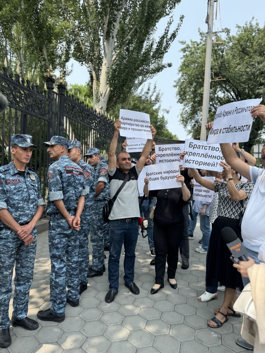Сегодня у здания НС члены движения «Всеармянский фронт» провели акцию в поддержку развития армяно-российских отношений