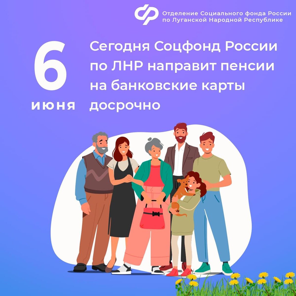 📣6 июня Социальный фонд России по ЛНР выплатит пенсии досрочно