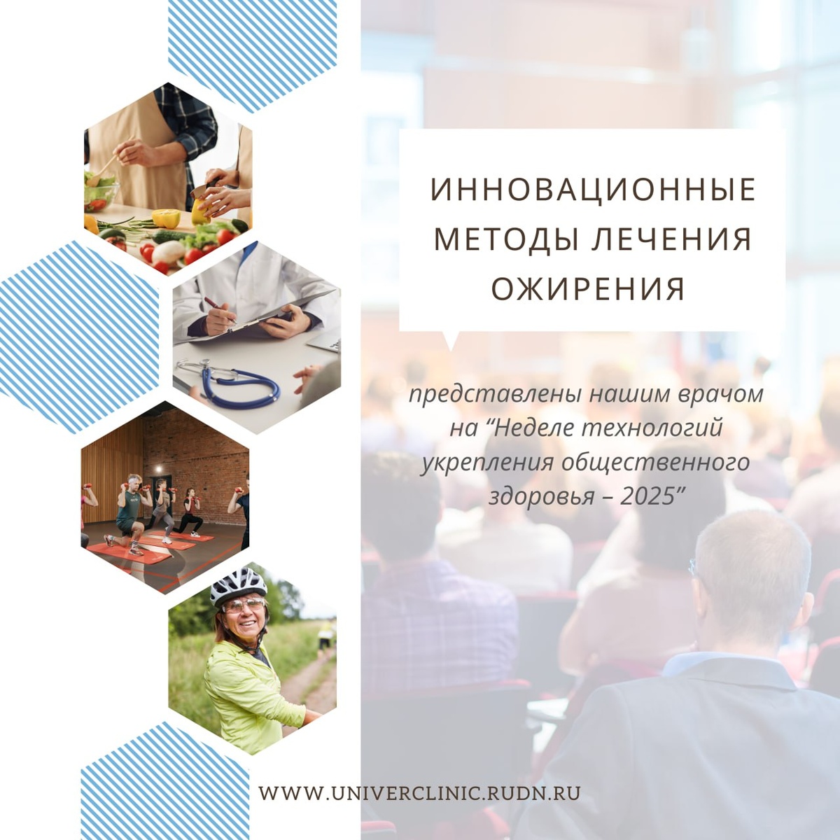 Об укреплении здоровья населения, повышении осведомленности специалистов в деле правильного питания, а также о правилах качественного взаимодействия с информационной средой без повышения стрессовых ситуаций говорили в рамках научно-образовательного проекта «Неделя технологий укрепления общественного здоровья – 2025», организованного Российским обществом профилактики неинфекционных заболеваний и ФГБУ «НМИЦ ТПМ» Минздрава России. С докладом об инновационных методах лечения ожирения выступила Заведующая эндокринологическим отделением Университетского клинического центра им. В.В. Виноградова (филиал) РУДН врач – эндокринолог Евгения Игоревна Лучина. Наш врач сделал фокус доклада на терапии ожирения, которую успешно применяют на базе нашей клиники.