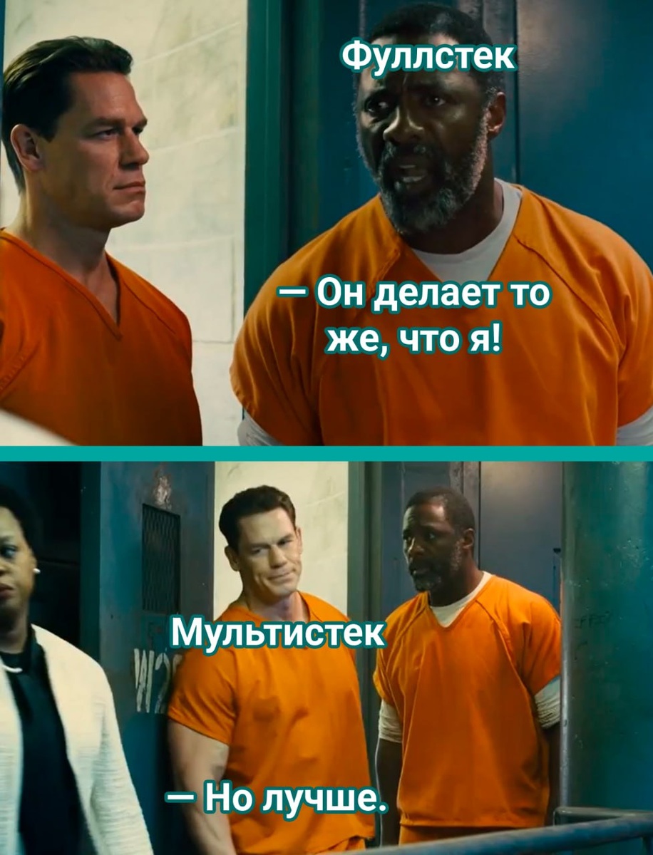 А в чём собственно разница? 👁👁👁Объясняем Мультистек помимо фуллстек базы обладает навыками и в других сферах. Например, ML, аналитические пайплайны или даже мобильная разработка. Разумеется такая универсальность может как помогать так и мешать бизнесу. А что вы думаете про такого «райчу⚡️» из мира фуллстек-разработки?