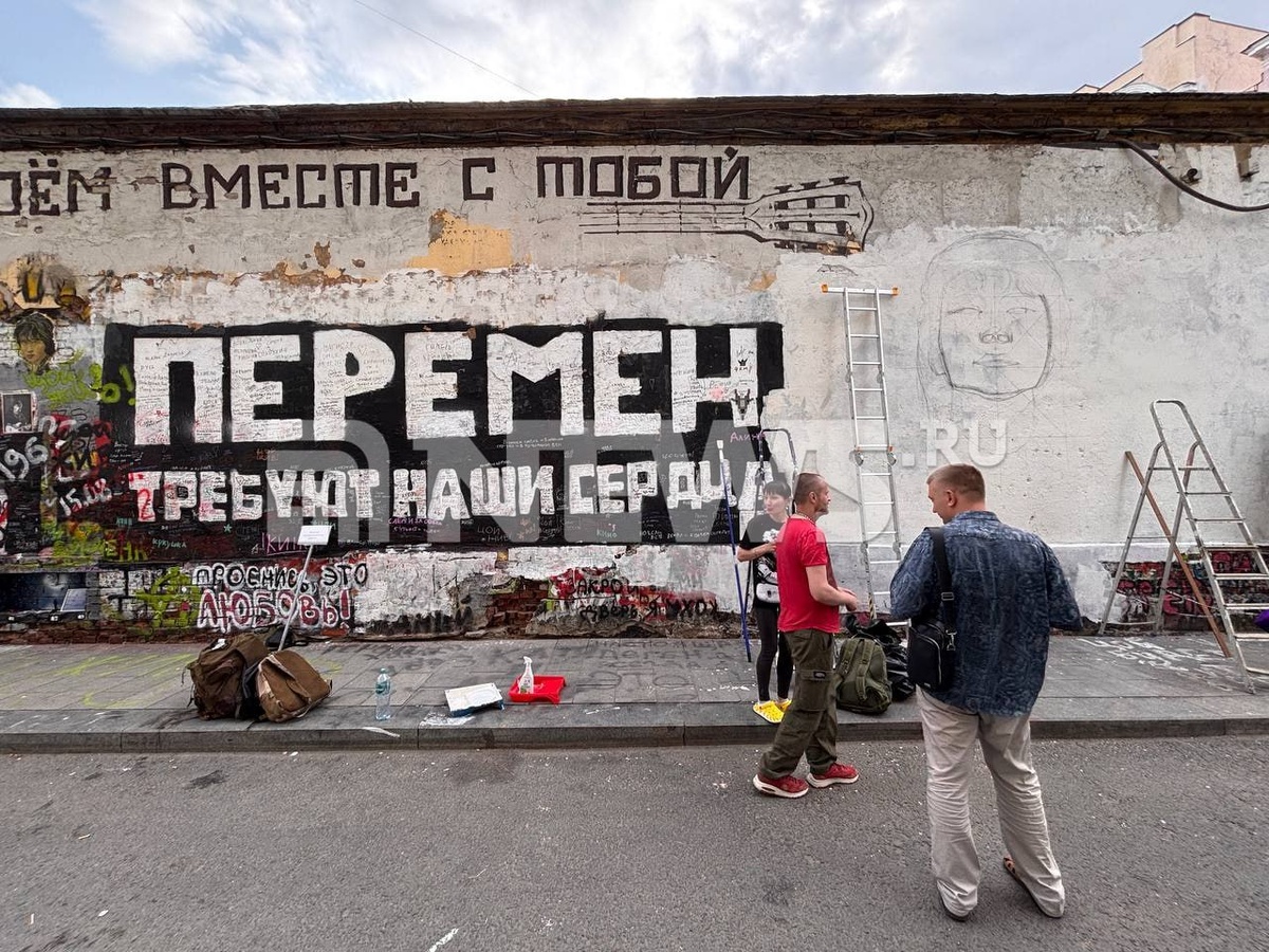 В ответ на пост ⭕⭕️ Стену Цоя не закрашивают, а восстанавливают: NEWS ru узнал, как будет выглядеть обновленный мурал. По словам одной из художниц и по совместительству фанаток артиста, предыдущий рисунок устарел и его решили обновить. «Старый портрет — это был уже не Цой, а непонятно, кто. Завтра у нас уже будет все в цвете», — поделилась девушка. ⭕️ Подписаться | Прислать новость | Буст