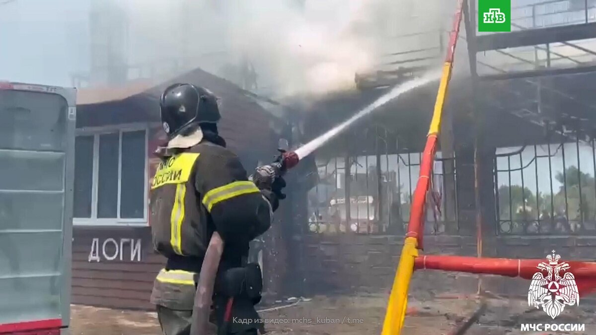 [ Смотреть видео на сайте НТВ ] Пожар произошел на территории одного из крупнейших парков в Анапе. В Сети появились кадры пожара в парк «Джунгли» на Пионерский проспекте в Анапе. Как сообщили в краевом МЧС, на территории загорелись автомобильные покрышки. Причины возгорания выясняют. Площадь пожара составила 650 кв. метров, он уже ликвидирован. Огонь повредил кафе и шесть торговых палаток. Пострадавших нет, отметили в МЧС. [ Смотреть видео на сайте НТВ ]