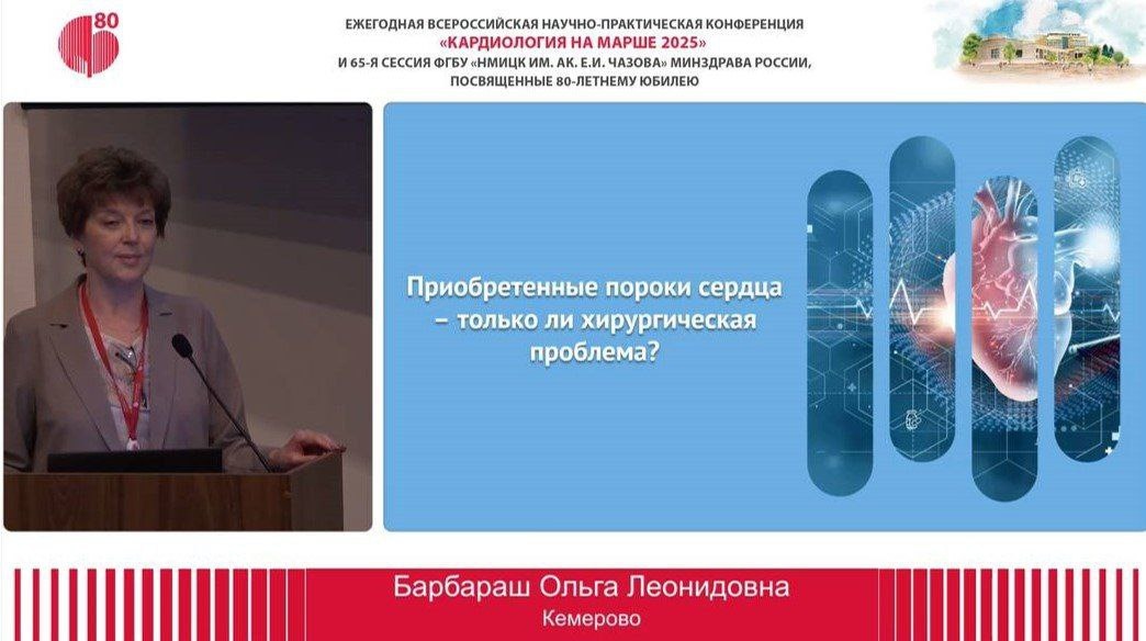 ❗️Наши эксперты приняли участие в ежегодной Всероссийской научно-практической конференции «КАРДИОЛОГИЯ НА МАРШЕ 2025» и 65-й сессии ФГБУ «Национального медицинского исследовательского центра имени академика Е.И. Чазова» Минздрава России. На конференции представлены фундаментальные аспекты кардиологии, самые последние научные достижения и клинические подходы в области профилактики, диагностики, лечения и реабилитации сердечно-сосудистых и коморбидных заболеваний. 🎤С мемориальной лекцией имени академика РАН Евгения Ивановича Чазова выступила Ольга Леонидовна Барабараш, директор НИИ КПССЗ, академик РАН. В докладе «Современные аспекты ведения пациентов с приобретенными пороками сердца. Только ли проблема хирурга?» отмечено, что приобретенные пороки сердца — следующая за атеросклерозом эпидемия в области сердечно-сосудистых заболеваний 21 века. И одна из ведущих причин смертности и инвалидизации населения. ✔️П