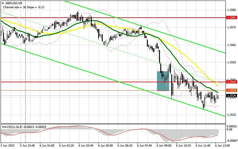 В своем утреннем прогнозе я обращал внимание на уровень 1.3544 и планировал от него принимать решения по входу в рынок. Давайте посмотрим на 5-минутный график и разберемся с тем, что там произошло. Снижение и формирование ложного пробоя в районе 1.3544 привели к точке входа на покупку фунта, но до крупного роста пары дело так и не дошло. На вторую половину дня техническая картина не пересматривалась.