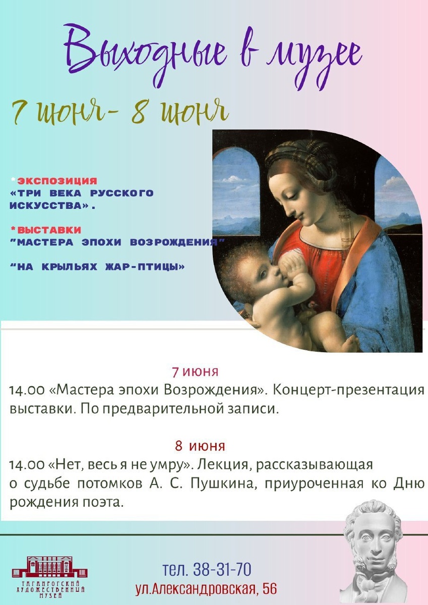 Выходные в музее обещают интересное открытие новой выставки и познавательную лекцию об А.С Пушкине. Также вас встретит цветущий музейный скульптурный дворик и покорит своим очарованием летней красоты.