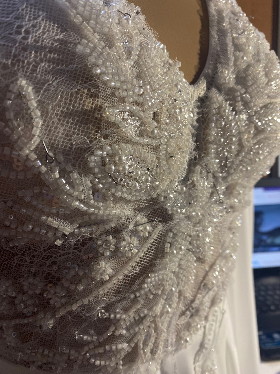 «Хочу платье в стиле Бохо» - такой запрос я получила от невесты вначале мая. Оценив свои знания и опыт я согласилась на заказ (в конце статьи небольшой ролик о платье). Скажу, что подобные никогда не шила, но опыт в пошиве платьев для спортивно-бальных платьев мне в данном случае пригодился. Материалы я заказала в проверенном магазине Свадебные и вечерние ткани Хочу отметить профессионализм консультантов и очень быстрое оформление заказа. О выборе модели. У меня были референсы. И все платья были построены на основе базовой конструкции: лиф с рельефами или без, втачной рукав с высоким окатом, отрезное по талии и юбкой полу- или солнце, разрез по ноге. Я взяла за основу базовую консТрукцию плечевого изделия. Смоделировала глубокий V-образный вырез на полочке и спинке. Рукав, по желанию заказчицы, сделала умеренного объема, с манжетой. Бока получилась в 1 солнце. По тканям. На верхнюю часть платья я взяла 3 вида ткани: нижний слой сетка Санал в телесном оттенке, 2 слой - шантильи, 3 слой