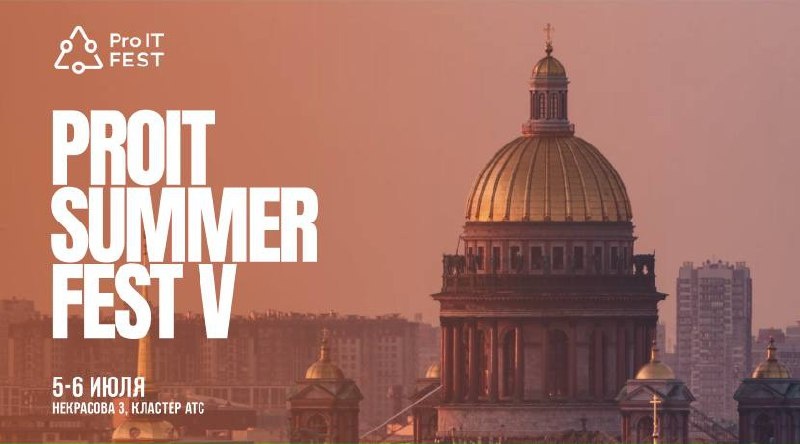 ⬜️⬜️⬜️⬜️ ProIT Fest V — главное IT-событие этого лета в Петербурге, 5-6 июля! Это не просто конференция, а фестиваль, где IT-профи создают контент вместе: баттлы, игровые форматы, мастер-классы, споры, живые дискуссии и даже стендапы! 🔍 Для кого? Developer, Front, QA, PM, Product, Analyst, UX, HR, CTO, CMO — все, кто живёт в IT, от Middle до C-Level. 🔥 Хедлайнеры секций: ➡️ Hype — про тренды в IT от подкастеров: «ProductCamp», «Weekend talk», «Linkmeup», «ITBizRadio», КодаКода» ➡️ Management — развитие менеджерских скиллов: «Карта Гипотез» Алексей Пименов, Neogenda ➡️ Fight — баттлы и IT-суды: «Code Battle» - Марк Шевченко (Московский клуб программистов), Даниил Подольский (Golang Conf) ➡️ Oops — фейлы и выводы. «Круглый стол: Доавтоматизировались» Иванов Алексей, QA 2ГИС, Вадим Утратенко, Павел Селиванов, Yandex Cloud ➡️ C-Level — закрытая зона для топов: Вице-президент МТС Банка, СТО Gaijin, CТО investing.com, Основатель и СЕО Sogenis, CPO CX Наумен, основатель TIQUM и YORT