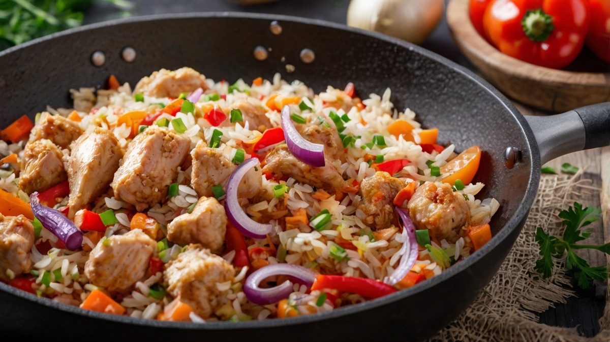 В это прозрачное, полутёмное вечернее время, когда солнце только скользит по краю крыш, душа жаждет уюта и вкуса… Не спеши заныривать в мир скучных бутербродов и доставки! Вот он - твой шанс за 30 минут сотворить свой личный маленький гастрономический праздник. И да, это проще, чем кажется! Тысячи раз я, как и многие, стояла у холодильника: "ну чем порадовать себя сегодня?" А ведь счастье - совсем рядом, на твоей кухне. Нужно всего-то: Моя кухня пахнет ветреным вечером и скоро наполнится золотым светом. Всё начинается с простого ритуала - промываю 200 г длиннозерного риса под холодной водой, пока каждая крупинка не станет прозрачной, чистой, как первый снег. Лёгкий шелест, как будто рис рассказывает мне свои секреты. Нарезаю 300 г куриного филе кубиками, средней величины - чтобы каждый кусочек потом был сочным, а не пересохшим. Смотрю на эти розовые квадратики, и уже предвкушаю, как они зазолотятся на сковородке! 1-2 моркови нарезаю мелким кубиком, и, пока нож послушно шуршит по доске,