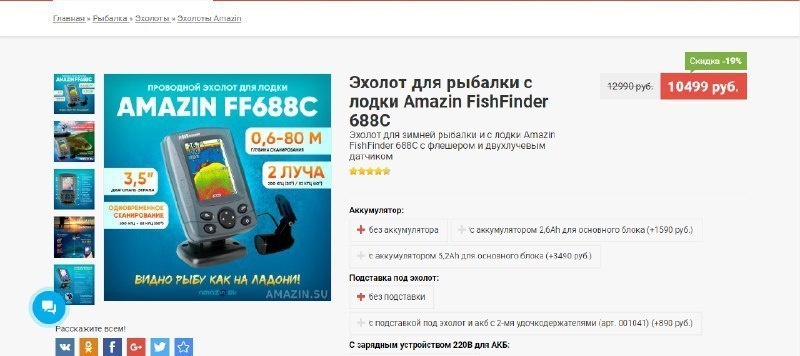 Эхолот для зимней рыбалки и с лодки Amazin FishFinder 688C c флешером и двухлучевым датчиком https://amazin.su/shop/7240/desc/ehkholot-amazin-ff688c