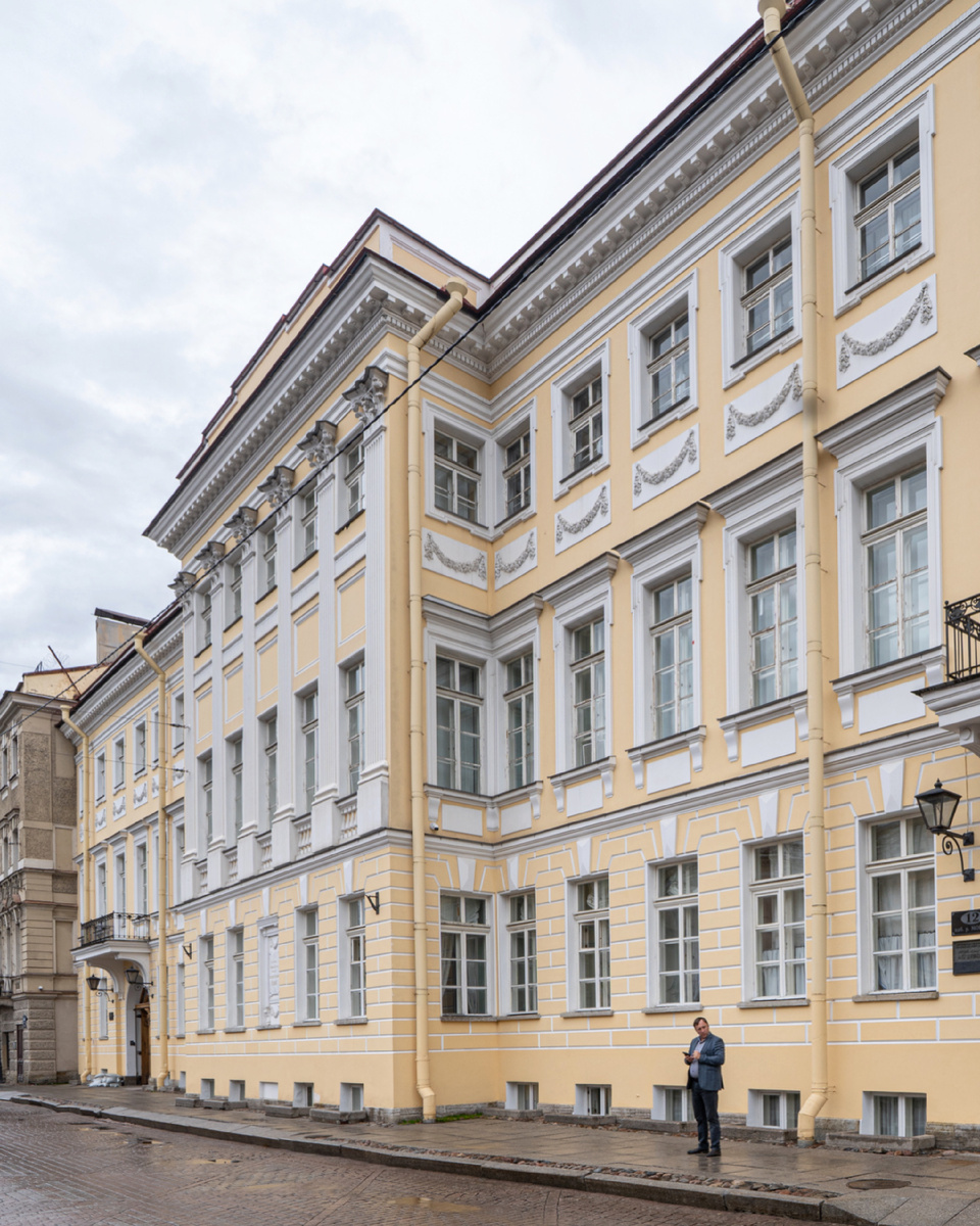 Перед вами последний адрес Александра Сергеевича Пушкина. Квартиру из 11 комнат на первом этаже особняка на Мойке, 12 Пушкин снял в сентябре 1836 года. Этот дом принадлежал княгине Софье Волконской, а построен он был в 1727 году для барона И. А. Черкасова. Считается, что проект подготовил Джузеппе Трезини. После дуэли с Дантесом в эту квартиру на Мойку привезли поэта, здесь 29 января 1837 года он умер. После смерти Пушкина его супруга отказалась от квартиры и уехала в имение родителей. Дом и квартиры в нем перестраивали, в советское время здесь были коммуналки. В 1924 году первый этаж дома был передан Пушкинскому кружку общества «Старый Петербург». Квартиру поэта начали восстанавливать по плану из письма В. А. Жуковского отцу Пушкина. Были собраны личные вещи и даже некоторые предметы мебели, включая письменный стол, кресло, диван, на котором умирал поэт. Диван был найден в Михайловском и возвращен в квартиру.
