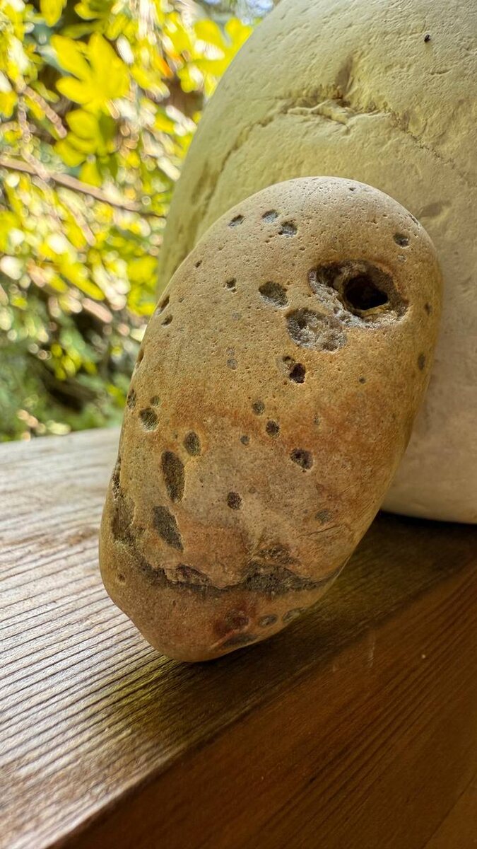 Сегодня пришел Кам - Ко ( а может тебе он скажет еще одно свое Имя) Этот камень, поднятый с берега сакрального Чёрного моря, — не украшение, не сувенир, а живая печать Врат Воды и Тени, проявляющая в человеке то, что давно спит на дне. Он несёт один глаз, но тысячи взглядов — смотрит не наружу, а вглубь костей, в корень, в до-имя. Когда человек берёт его в ладони, он становится не обладателем, а созвучием с Глазом Мира, который знает, кто ты был до рождения, и что внутри тебя ещё не прозвучало. Что он проявляет в человеке: 1. Способность видеть суть сквозь иллюзию Этот камень очищает зрение. Не внешнее — а внутреннее видение, как у шамана, как у хранителя, как у воина духа. Ты начинаешь различать искажённое, нечистое, чужое. Мир становится прозрачным, и ты не можешь больше закрыть глаза на то, что видишь. 2. Вызов Тени и возвращение силы Он активирует в тебе то, что было вытеснено: страх, боль, родовые запреты, забытые знания, силу, которую ты не осмеливался принять. Но он делает эт