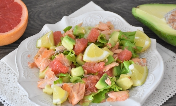 - Гармоничное сочетание пряного лосося с легкой горчинкой грейпфрута и ореховым вкусом авокадо