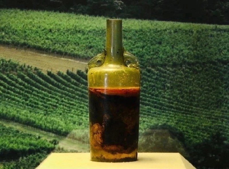 🌟 В полуторалитровой бутыли, сделанной из прозрачного стекла, вино сохранило свой красный цвет за 1700 лет благодаря тому, что поверх него налили оливковое масло и запечатали воском. Эта герметичная упаковка сохранила напиток в идеальном состоянии!
