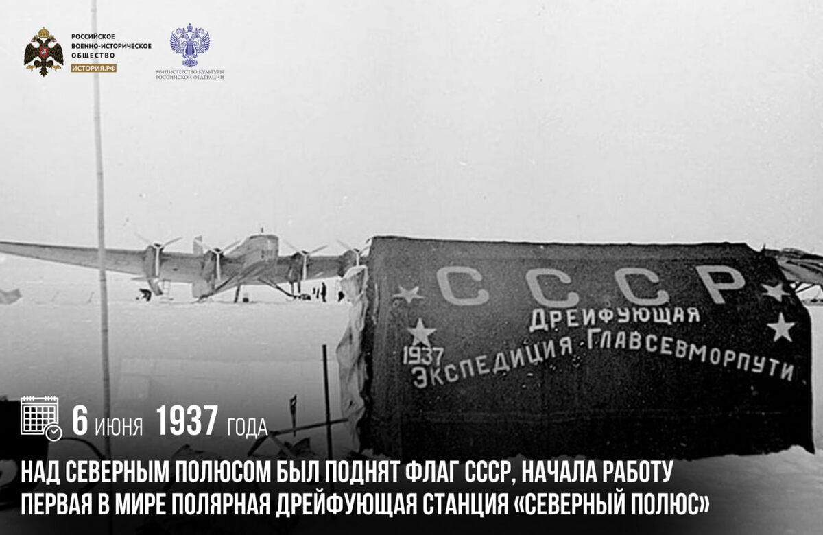 6 июня 1937 года над Северным полюсом был поднят флаг СССР, начала работу первая в мире полярная дрейфующая станция «Северный полюс»