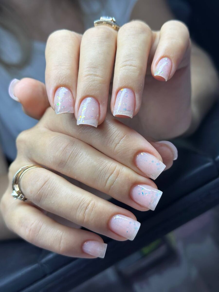 Моя гостья часто приносит материал для ногтей, который ей понравился. Сегодня это акригель с гранулами.