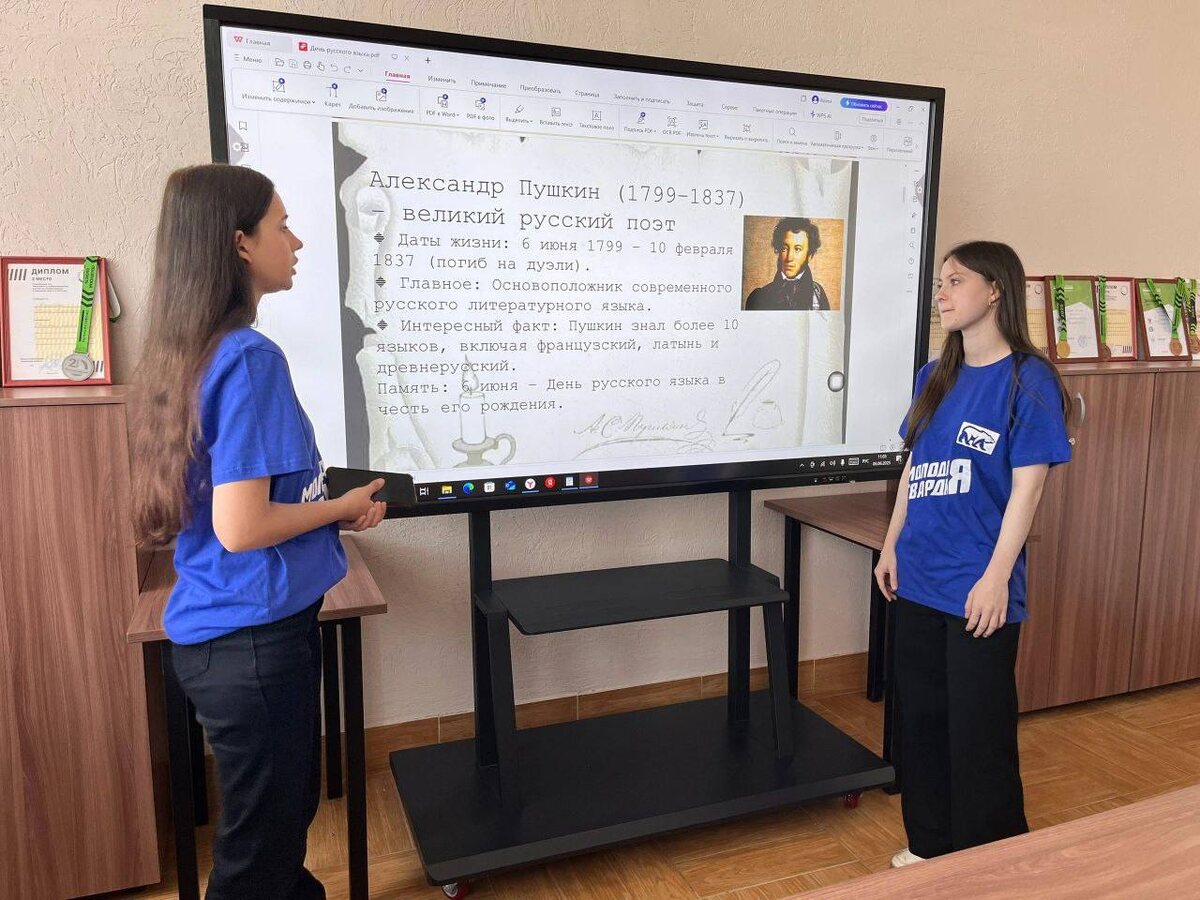 📚 В Пензе отметили День рождения Пушкина и День русского языка Молодогвардейцы провели ряд мероприятий, посвященных великому поэту и богатству русского языка: 📍Пензенский колледж пищевой промышленности и коммерции: Активисты «Молодой Гвардии» провели для студентов интерактивную презентацию, раскрыв малоизвестные факты из жизни и творчества А.С. Пушкина. 📍Пензенский колледж архитектуры и строительства: Для школьников из летнего лагеря МБОУ СОШ №58 молодогвардейцы организовали увлекательную квиз-игру, проверив знания ребят о Пушкине. В завершение обсудили важность чистоты речи и отказа от иностранных слов-паразитов. Кроме того, активисты «Молодой Гвардии» ПКАС организовали литературный вечер с выступлениями артистов и возложением цветов к бюсту поэта. Выставка «Давайте Пушкина читать» напомнила о непреходящей ценности классической литературы.