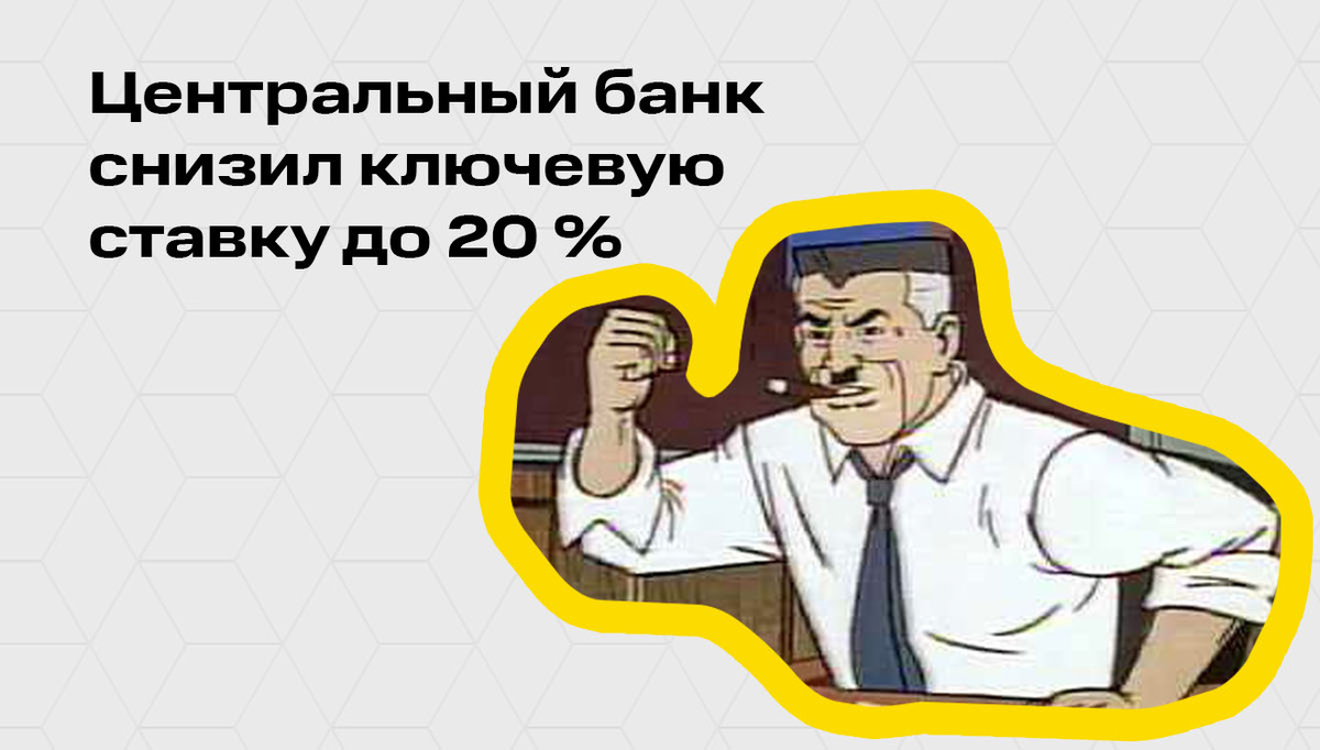 Центральный банк России снизил ключевую ставку с 21 до 20 процентов годовых с 09.06.2025.